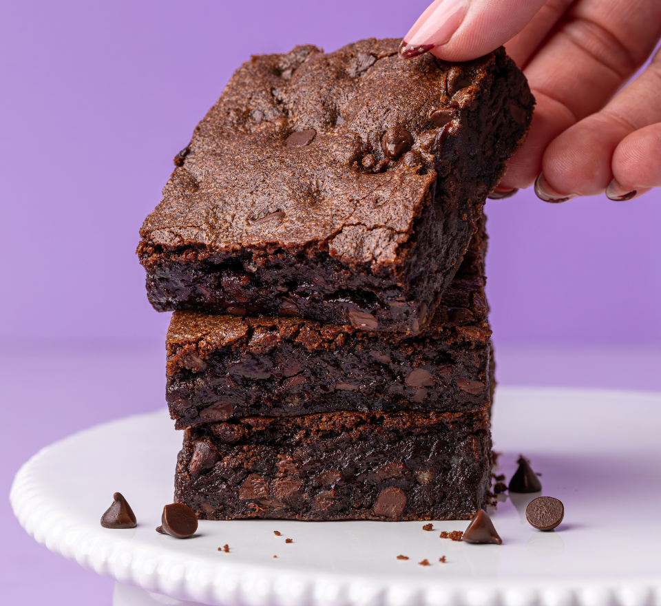 Warning: these brownies are ridiculously gooey, mega chocolatey, and highly likely to vanish the second they hit the plate. Rich, fudgy and loaded with choc chunks, they’re basically chocolate heaven with every bite.