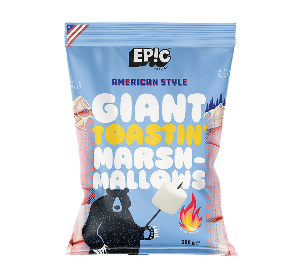 Delicious pillowy hunks of sweetness supersized for a bigger, bolder epic experience. So grab a bag, fire up the grill, skewer a mallow and start toastin’. Truly epic!!