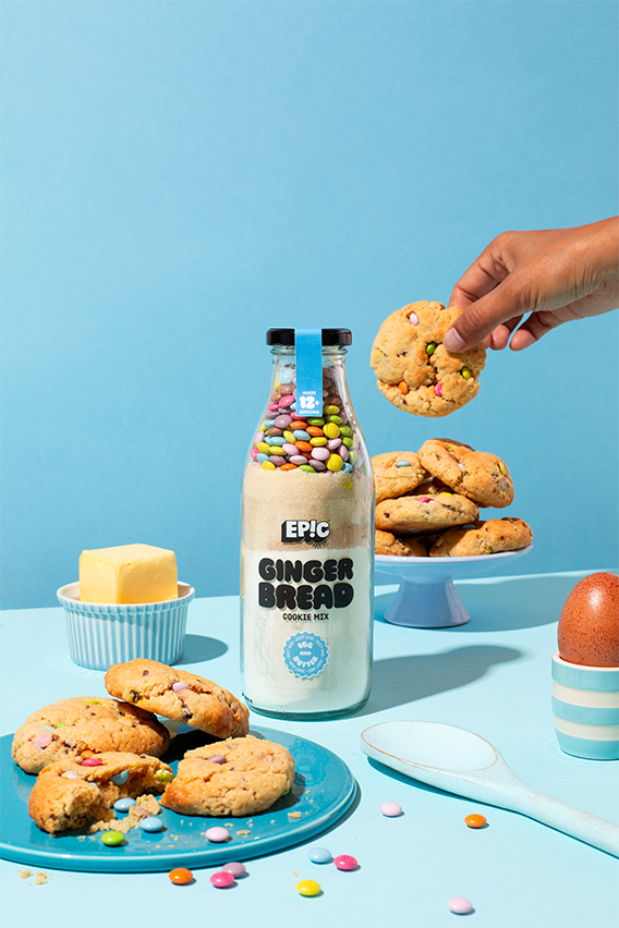Get ready to bake up some festive fun with our Easy Gingerbread Rainbow Cookies! Made using the Epic Snax Gingerbread Cookie Mix, this easy gingerbread cookie recipe is perfect for a spot of Christmas baking. Laced with subtle sweet ginger spice and studded with colourful chocolate beans for a playful twist on a classic.
