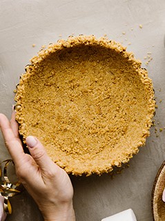 Add the melted butter and mix until the biscuit crumbs are well coated. Pour into the prepared tin and press into the base and sides, either using your fingers or the back of a spoon. Chill in the fridge for at least one hour.