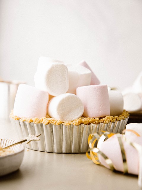 Pile Epic Snax’s Giant Toastin’ Marshmallows on top. Then, you can either use a blowtorch, or preheat your grill to medium-high to toast the marshmallows on top until they’re golden and gooey.