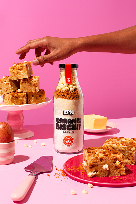 Say hello to your new favourite bake – our Gooey White Chocolate Caramel Biscuit Blondies! Made using Epic Snax’s Caramel Biscuit Blondie Mix, this easy blondie recipe is packed with creamy white chocolate chips and crunchy caramel biscuit pieces for the ultimate Biscoff-style indulgence.